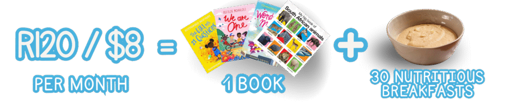 Over the next three years, our aim is to reach 10,000 young, vulnerable children in communities across South Africa with a daily, nutritious breakfast and a new book every month. As a non-profit organisation dedicated to early childhood development, we aim to realize this objective by encouraging members of the public to make a donation of R120.00 / $8.00, which will provide a child with a healthy breakfast and a new book each month. By donating to the Book & Breakfast Initiative, you can play an important role in giving children the best possible start in life while helping to build a better future for us all.